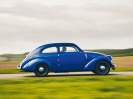 Передня частина має масивну хромовану решітку, що нагадує вінтажний Rolls-Royce, а також круглі фари і поворотники. Розширені колісні арки, круглі задні ліхтарі та хромовані бампери доповнюють ретро-вигляд. Незважаючи на те, що літаючий мопс не завжди красивий, він, безумовно, виділяється.